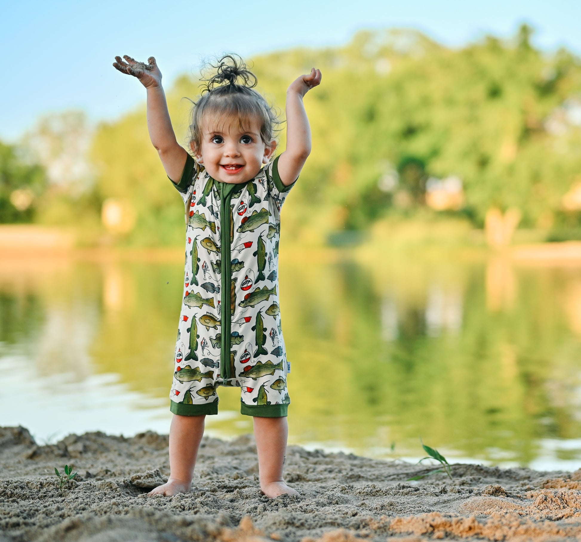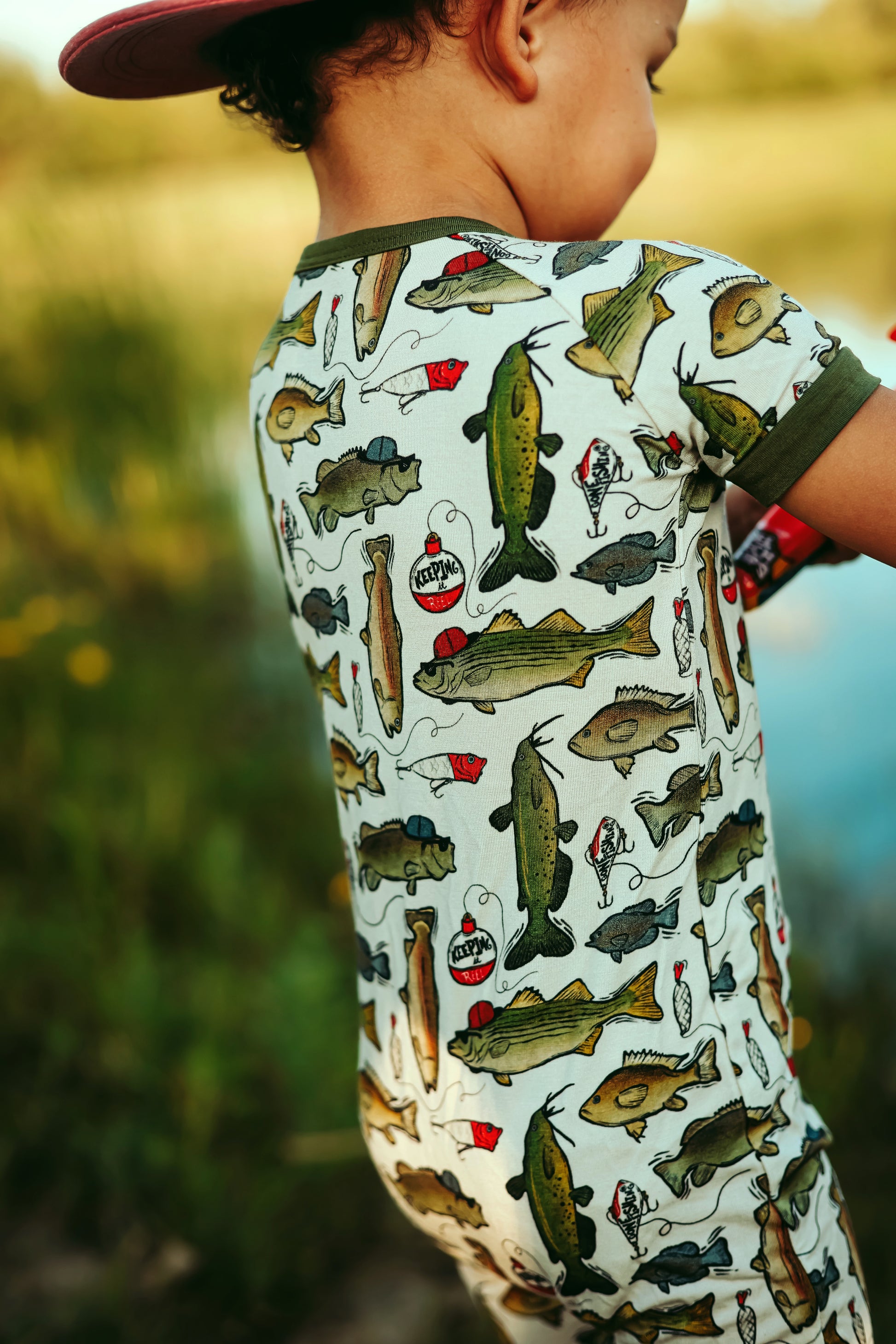 Get hooked on this fishing print by Fletch; it’s one dad and grandpa and the whole outdoor-sy fam will love. Featuring fishhooks, fishing poles and big catches, your kiddo will be “keepin it reel” 24/7. Get ready to hop in the boat and enjoy the sunshine!